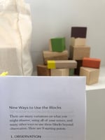 The Attendant Kit booklet with nine different ways to use the blocks, written and handmade by the artist.