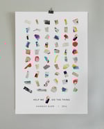 All of the bits used in the book Help me [ ], do the thing. are arranged in a lively grid on this 27 x 19" poster. It is a hand signed and editioned print, on 100# uv coated matte stock. There are 15 available while supplies last.